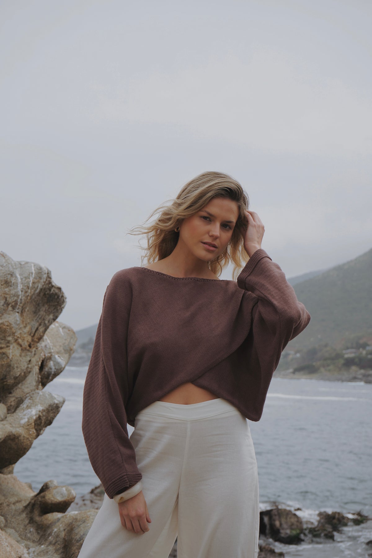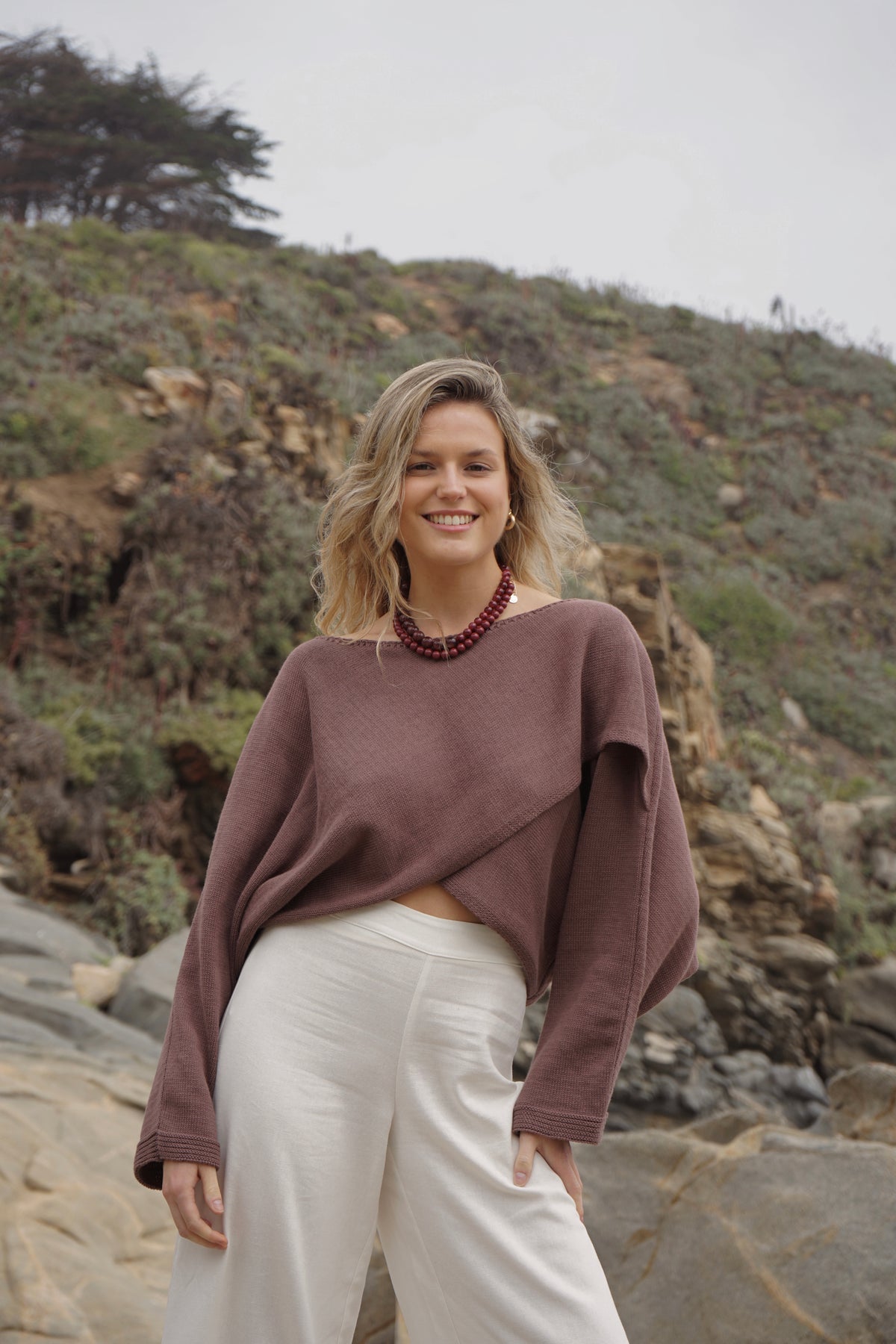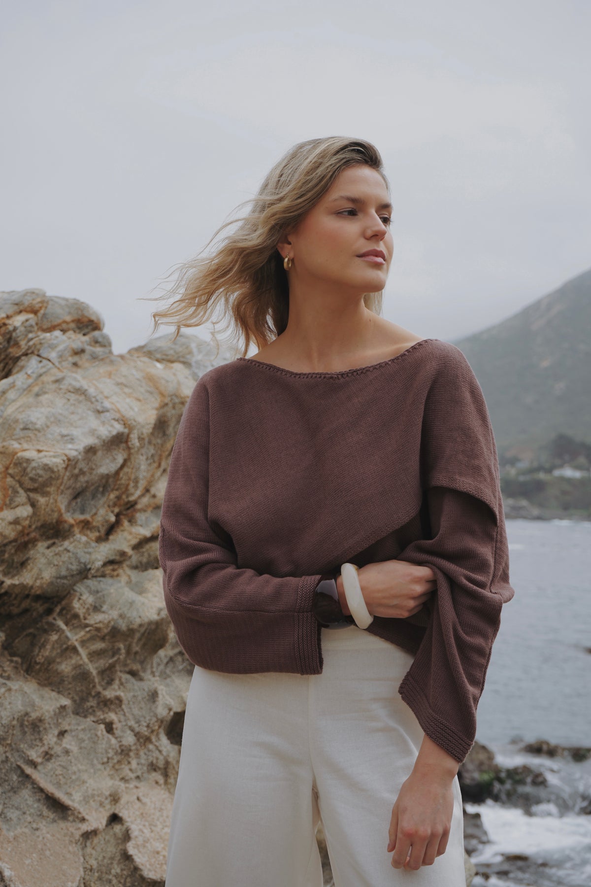 Un sweater tipo capa 100% algodón liviano y fresco ideal para las tardes de verano.