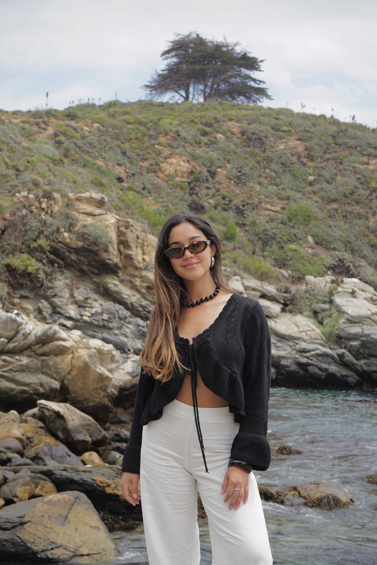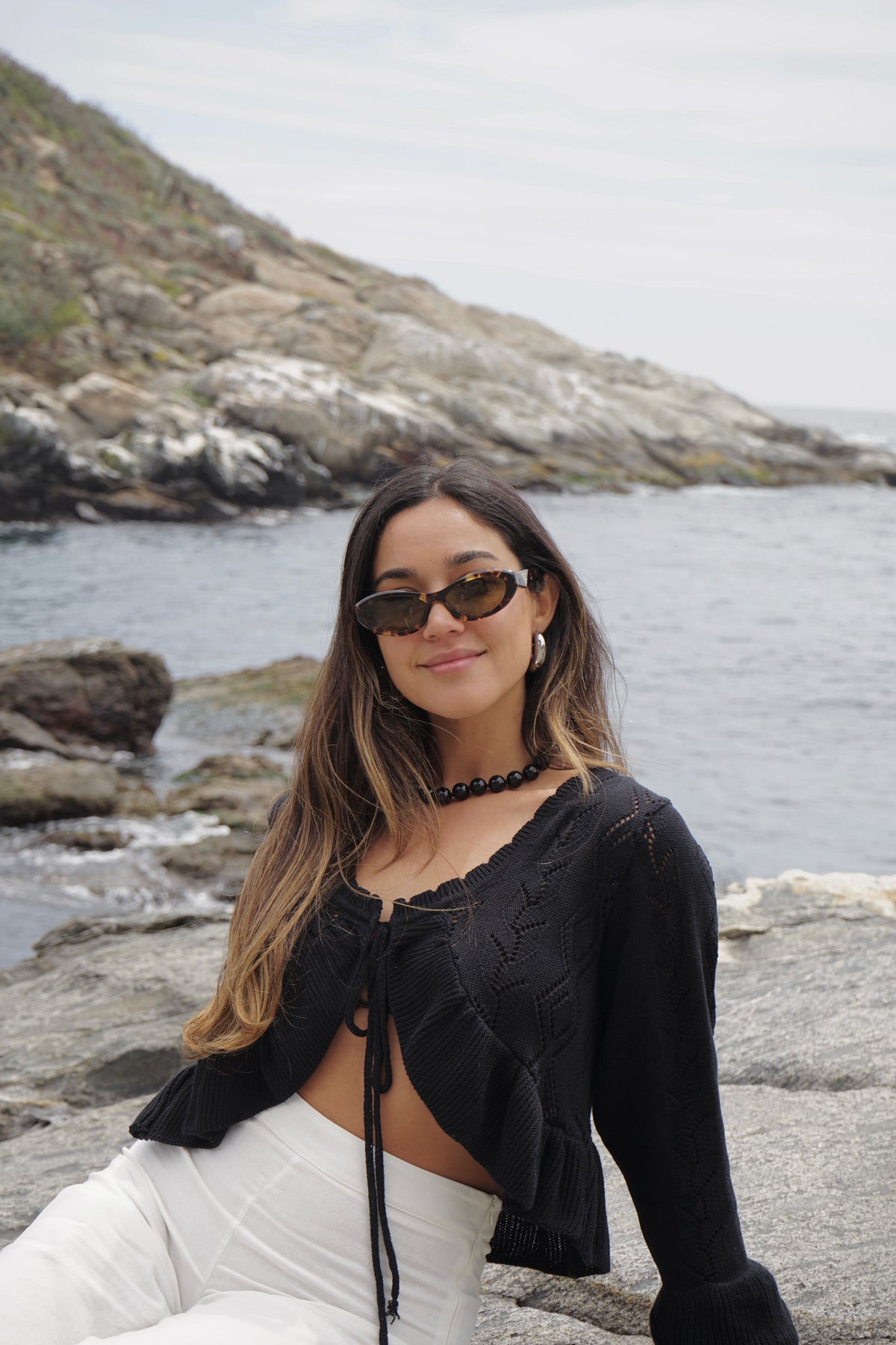 Disponible en negro y crudo, es el tipo de prenda que realza cualquier look sin esfuerzo.
