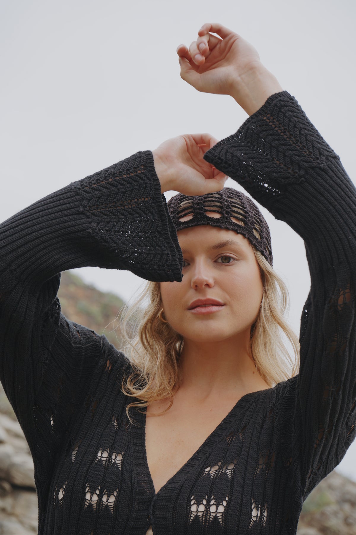 Tapado Calado 100% algodón . Ligero, atemporal y lleno de movimiento. Este tapado tejido en 100% algodón natural es el complemento perfecto para los días de sol y las tardes frescas junto al mar. Su tejido calado deja entrever la piel con sutileza, aportando textura y un toque bohemio elegante.