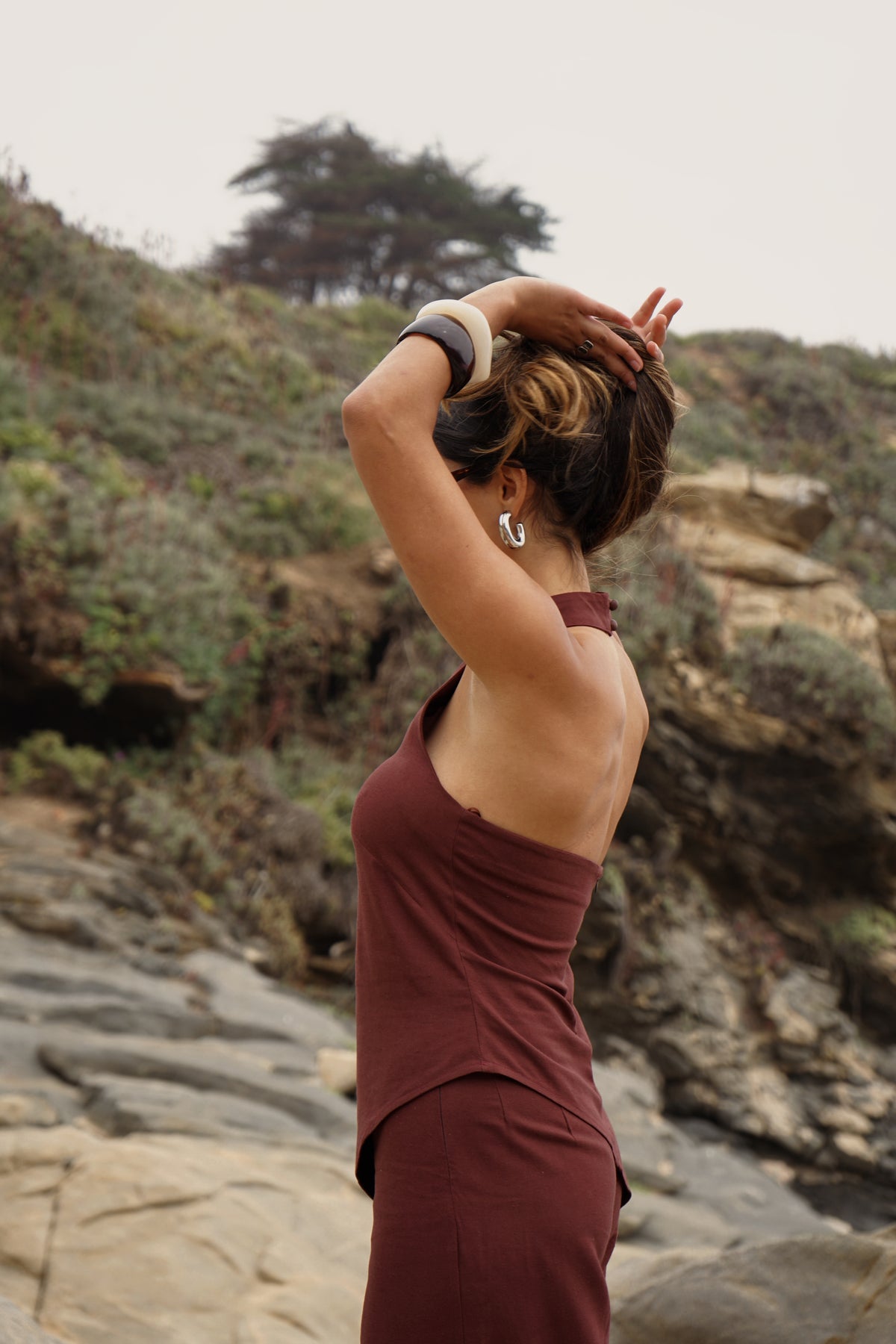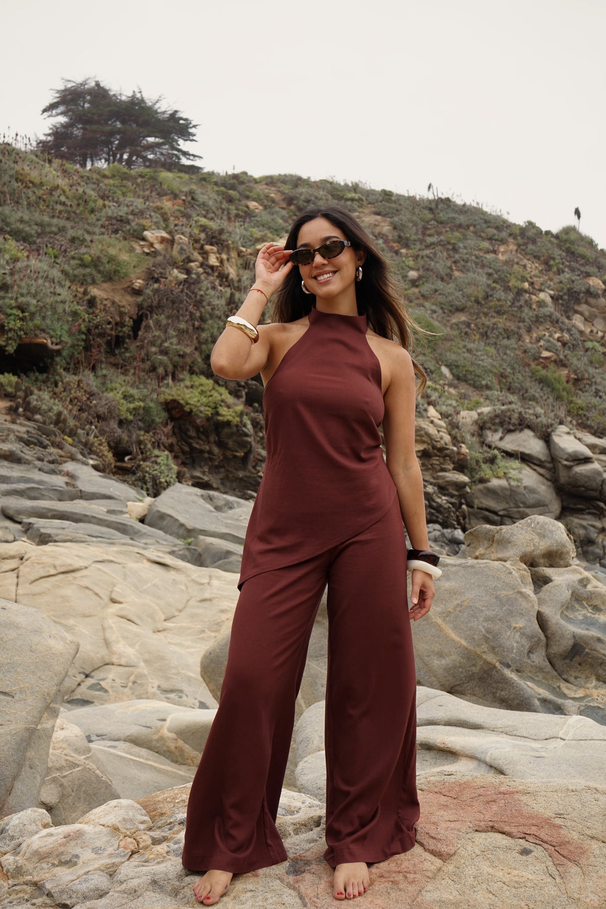 Un top de lino cuello halter full tendencia llega esta temporada de primavera verano para complementar tus looks.